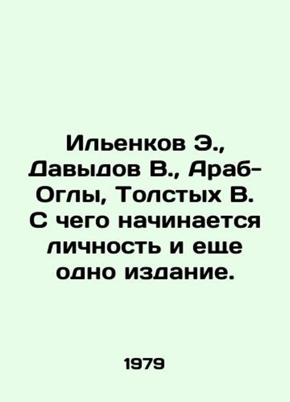 E. Ilyenkov, V. Davydov, V. Arab-Ogli, V. Tolstykh. In Russian /Ilenkov E., Davydov V., Arab-Ogly, Tolstykh V. S chego nachinaetsya lichnost i eshche odno izdanie. Introduction and general editing by R.I. Kosolapov. M., Politizdat. 1979. 240 p. We have thousands of titles and often several copies of each title may be available. Please feel free to contact us for a detailed description of the copies available. SKUalb481f959eb494b39b.