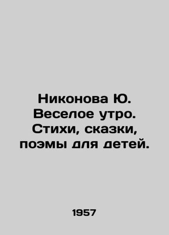 Nikonova Yu. Merry morning. Poems, fairy tales, poems for children. In Russian /Nikonova Yu. Veseloe utro. Stikhi, skazki, poemy dlya detey. Design of K.V.Vladimirov. Petrozavodsk. State Building of the Karelian SSR. 1957.We have thousands of titles and often several copies of each title may be available. Please feel free to contact us for a detailed description of the copies available. SKUalb48607239fa3b211d.