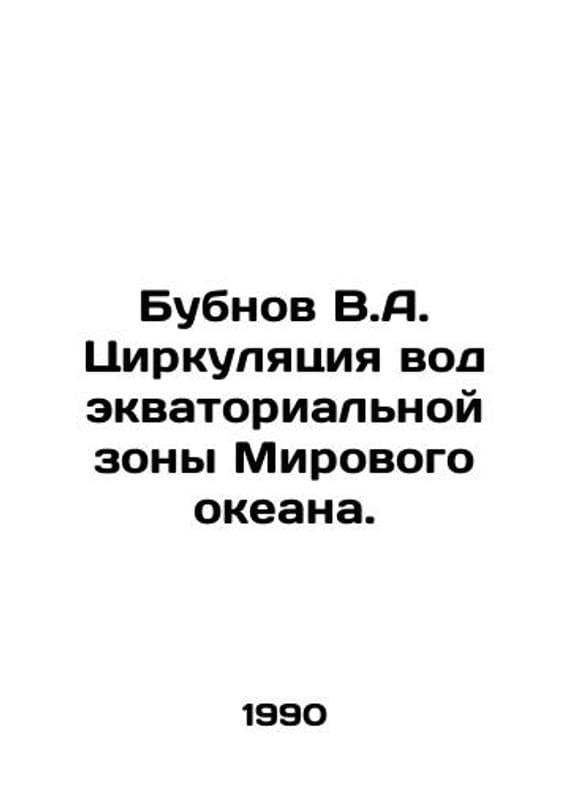 Bubnov V.A. Circulation of the waters of the equatorial zone of the World Ocean. In Russian /Bubnov V.A. Tsirkulyatsiya vod ekvatorialnoy zony Mirovogo okeana. Artist V.S. Ustinov. RAS S.S. L. Gidrometeo Edition 1990. 280 p. We have thousands of titles and often several copies of each title may be available. Please feel free to contact us for a detailed description of the copies available. SKUalb4908a3e4b9091a75.