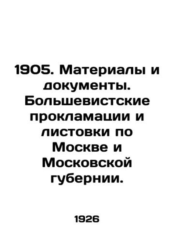 1905. Materials and documents. Bolshevik proclamations and leaflets on Moscow and the Moscow governorate. In Russian /1905. Materialy i dokumenty. Bolshevistskie proklamatsii i listovki po Moskve i Moskovskoy gubernii. Materials and documents under the general editorship of M.N. Pokrovsky. Commission of the Central Executive Committee of the USSR on the organization of the celebration of the 20th anniversary of the Revolution of 1905 and STPART of the Central Committee of the All-Union Communist Party (b) M.-L. Gosizdat of 1926, 460 p. We have thousands of titles and often several copies of each title may be available. Please feel free to contact us for a detailed description of the copies available. SKUalb4920de25111d08dd.