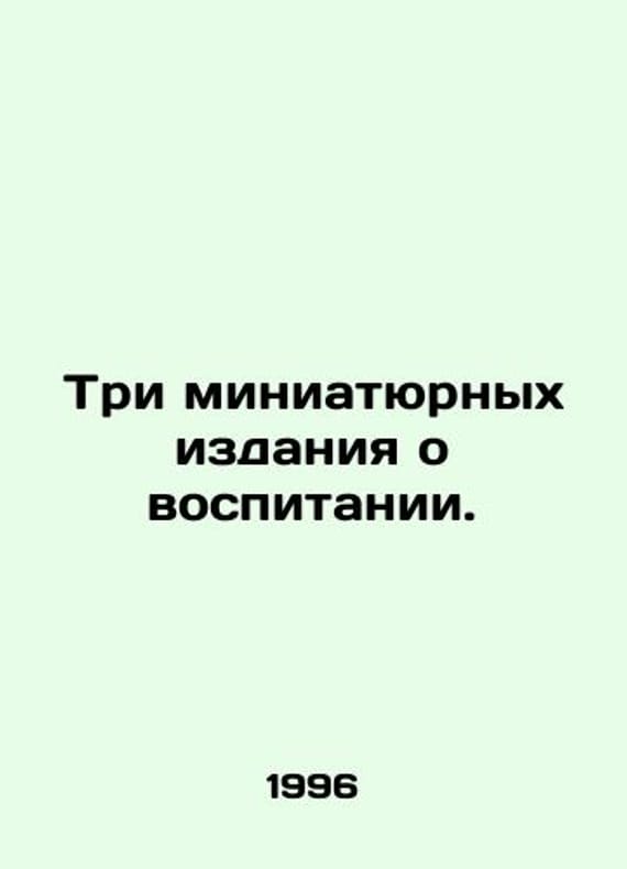 Three miniature editions of parenting. In Russian (ask us if in doubt)/Tri miniatyurnykh izdaniya o vospitanii.. M. Sytinov Foundation. 1996. 238 and 164 and 166p. Format 60X90 / 128. Circulation 3000 copies. 1. Unfinished diary. Teaching the future emperor Paul I led by his teacher S. A. Poroshin. 2. Teaching virtues. Or as a poet V.A. Zhukovsky was the mentor of the heir to the throne future emperor Alexander II. 3. Catherine the Great. Teaching the grandchildren. SKUalb494281a8496bf0f1.