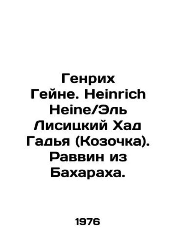 Heinrich Heine. Heinrich Heine / El Lisitzky Haad Gadya (Goat). Rabbi of Baharah. In Russian (ask us if in doubt)/Genrikh Geyne.Heinrich Heine/El Lisitskiy Khad Gadya (Kozochka). Ravvin iz Bakharakha.With illustrations by El Lisitzky. In it. Language. Berlin Morning Berlin Book Publishing House. 1976. 70 p.. SKUalb49447bb006970f77.