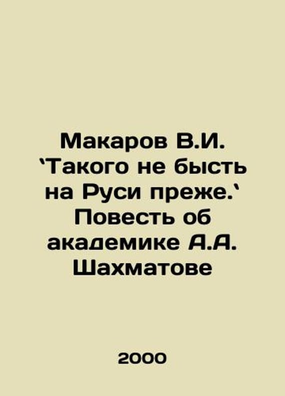 Makarov V.I. This will not happen in Russia before. The Tale of Academician A.A. Shakhmatov In Russian /Makarov V.I. Takogo ne byst na Rusi prezhe. Povest ob akademike A.A. Shakhmatove St. Petersburg Aleteiya 2000. 416s. We have thousands of titles and often several copies of each title may be available. Please feel free to contact us for a detailed description of the copies available. SKUalb497eb33e010c6c94.