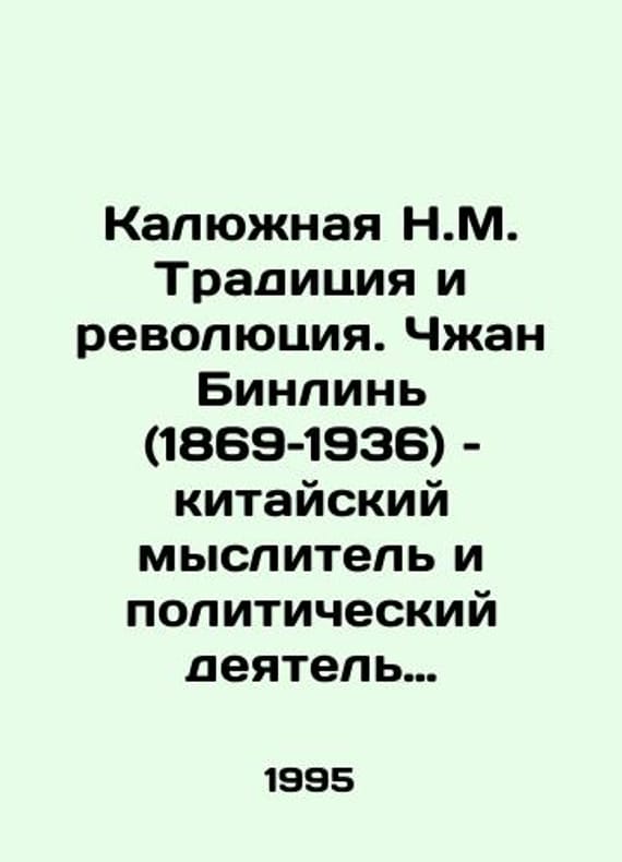 Kalyuzhnaya N.M. Tradition and Revolution. Zhang Binlin (1869-1936) is a New Age Chinese thinker and politician. In Russian /Kalyuzhnaya N.M. Traditsiya i revolyutsiya. Chzhan Binlin (1869 1936) kitayskiy myslitel i politicheskiy deyatel Novogo vremeni. M. Institute of Oriental Studies, Russian Academy of Sciences, 1995. 344 p. We have thousands of titles and often several copies of each title may be available. Please feel free to contact us for a detailed description of the copies available. SKUalb49969494d79aa133.
