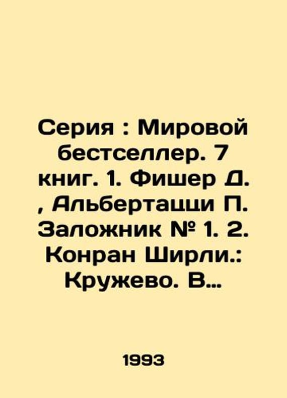 Series: A World Bestseller. 7 books. 1. Fisher D., Albertazzi Hostage # 1. 2. Conran Shirley.: Lace. In 2 books. Book 1. 3. Clancy Tom.: Patriot Games. 4. Jackie Collins.: Gamblers and Lovers. In two books. (Book 2). 5. About Mara Kate.: Bad egg. 6. Spencer Laveil.: Forgiveness. 7 In Russian /Seriya: Mirovoy bestseller. 7 knig. 1. Fisher D., Albertatstsi Zalozhnik # 1. 2. Konran Shirli.: Kruzhevo. V 2-kh knigakh. Kniga 1. 3. Klensi Tom.: Igry patriotov. 4. Kollinz Dzhekki.: Igroki i lyubovniki. V dvukh knigakh. (Kniga 2). 5. O Mara Keyt.: Negodyayka. 6. Spenser Laveyl.: Proshchenie. 7. Krentts (Krents) Dzheyn Enn (iz Series: World Bestseller. Moscow, News. 1993.We have thousands of titles and often several copies of each title may be available. Please feel free to contact us for a detailed description of the copies available. SKUalb49c20344c3be22b3.