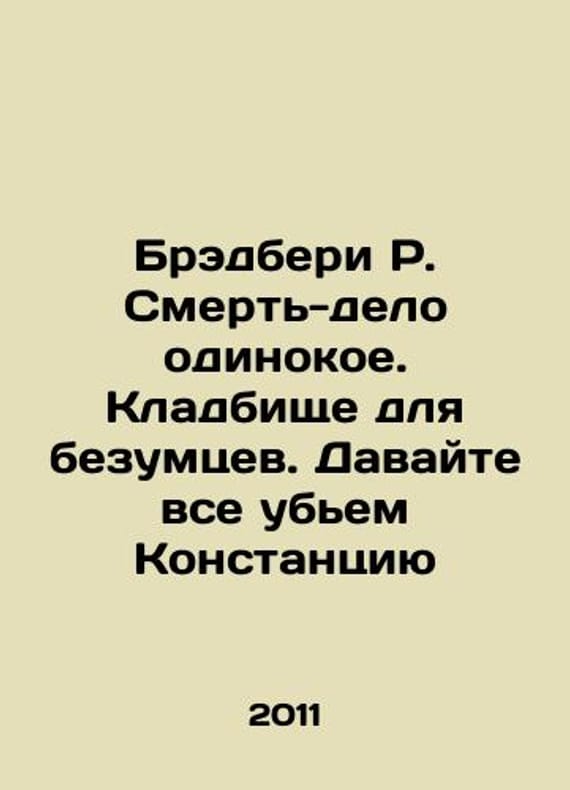 Bradbury R. Death is a lonely affair. A graveyard for madmen. Lets all kill Constance In Russian /Bredberi R. Smert-delo odinokoe. Kladbishche dlya bezumtsev. Davayte vse ubem Konstantsiyu Series: The Worlds Best Detective M. Exmo 2011.We have thousands of titles and often several copies of each title may be available. Please feel free to contact us for a detailed description of the copies available. SKUalb49cdd8251aa0747e.