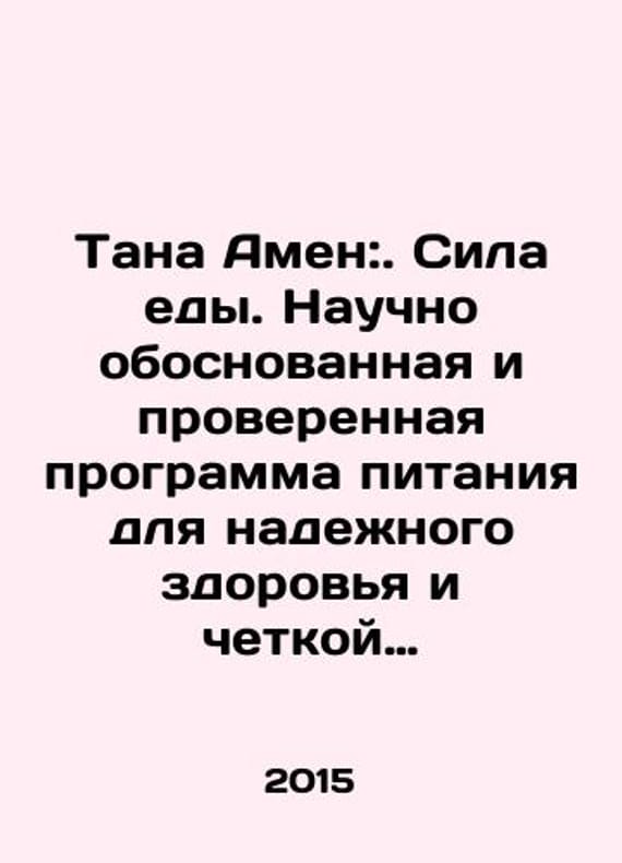 Tana Amen: The Power of Food. A scientifically based and proven nutrition program for robust health and well-functioning In Russian /Tana Amen:. Sila edy. Nauchno obosnovannaya i proverennaya programma pitaniya dlya nadezhnogo zdorovya i chetkoy raboty M. Exmo 2015.We have thousands of titles and often several copies of each title may be available. Please feel free to contact us for a detailed description of the copies available. SKUalb4a03a5bda183e3c2.