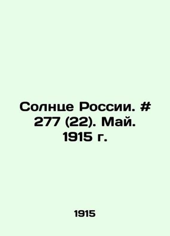 The Sun of Russia. # 277 (22). May. 1915. In Russian /Solntse Rossii. # 277 (22). May. 1915 g. Weekly Art and Literature Journal. Petrograd. The Partnership of the Publishing Affair The Kopeik. 1915. We have thousands of titles and often several copies of each title may be available. Please feel free to contact us for a detailed description of the copies available. SKUalb4a0f8fbb36748326.