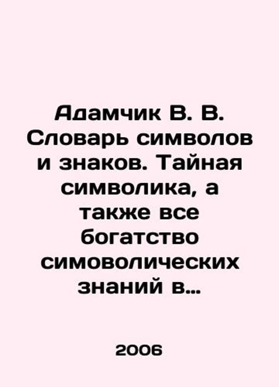Adamchik V.V. Dictionary of Symbols and Signs. Secret Symbolism, as well as all the richness of Symbolic Knowledge as interpreted from C.Jung, Z. Freud to Frazer and Schneider. In Russian /Adamchik V. V. Slovar simvolov i znakov. Taynaya simvolika, a takzhe vse bogatstvo simovolicheskikh znaniy v traktovke ot K.Yunga, Z.Freyda do Frezera i Shnaydera. Author-compiler Vladimir Vyacheslavovich Adamchik. Illustrations by Andrzej Klimovsky and Danusia Sheybal Moscow. Minsk. ACT. Harvest. 2006. 240 p. We have thousands of titles and often several copies of each title may be available. Please feel free to contact us for a detailed description of the copies available. SKUalb4a2ecb09ac19e197.