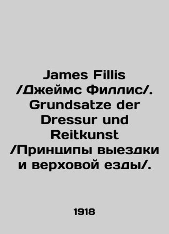 James Fillis. Grundsatze der Dressur und Reitkunst. In Russian (ask us if in doubt)./James Fillis Dzheyms Fillis. Grundsatze der Dressur und Reitkunst Printsipy vyezdki i verkhovoy ezdy. Vierte verbesserte Auflage von Gustav Goebel Reitlehrer. Mit dem Bilde des Verfassers und 70 Abbildungen auf 36 Tafeln. Stuttgart. Verlag Schickhardt Ebner. 1918. XV 427 4) p. portrait 35 l. SKUalb4a56811f23f30137.