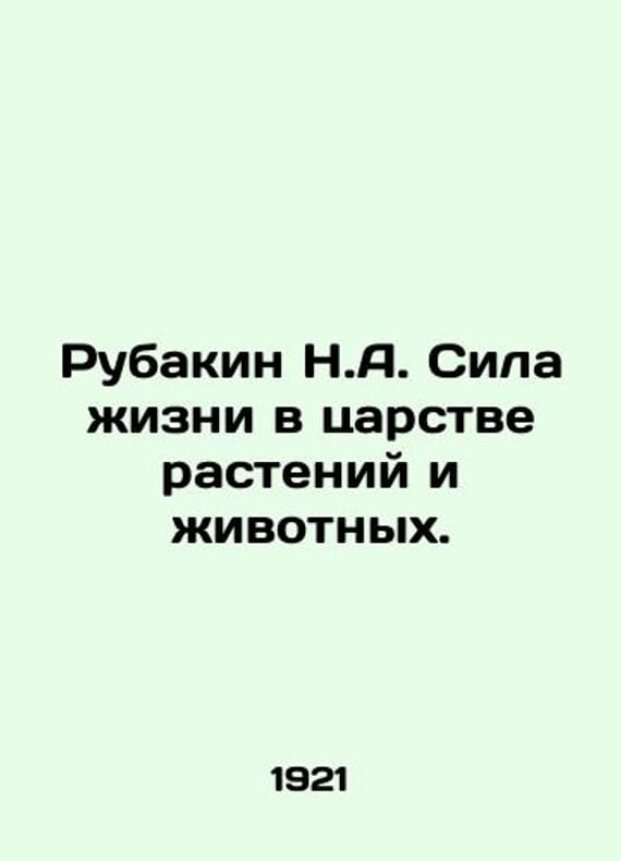Rubakin N.A. The power of life in the realm of plants and animals. In Russian /Rubakin N.A. Sila zhizni v tsarstve rasteniy i zhivotnykh. Life Book # 52. With Pictures. New York: Publishing House Press Association. 1921. 496 p., p. We have thousands of titles and often several copies of each title may be available. Please feel free to contact us for a detailed description of the copies available. SKUalb4a852e0e20d3cf9c.