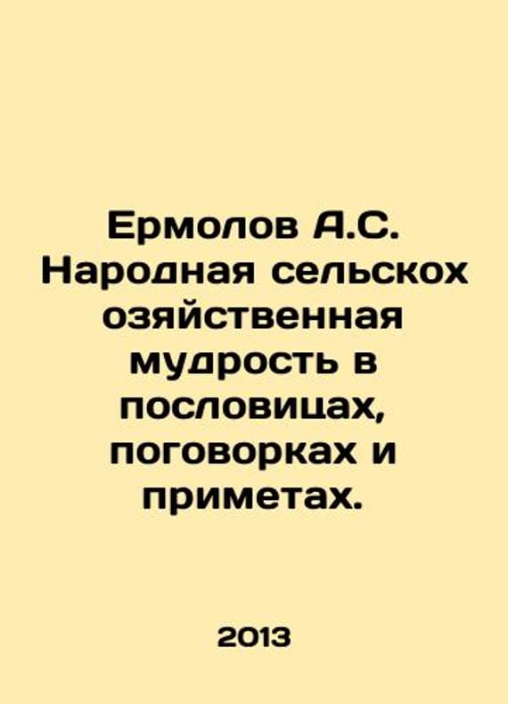 Yermolov A.S. Folk agricultural wisdom in proverbs, proverbs, and signs. In Russian /Ermolov A.S. Narodnaya selskokhozyaystvennaya mudrost v poslovitsakh, pogovorkakh i primetakh. Series: Russian Ethnography, edited by O.A. Platonov. Moscow: Institute of Russian Civilization, 2013, 880 pp. We have thousands of titles and often several copies of each title may be available. Please feel free to contact us for a detailed description of the copies available. SKUalb4b2824c6f2875859.