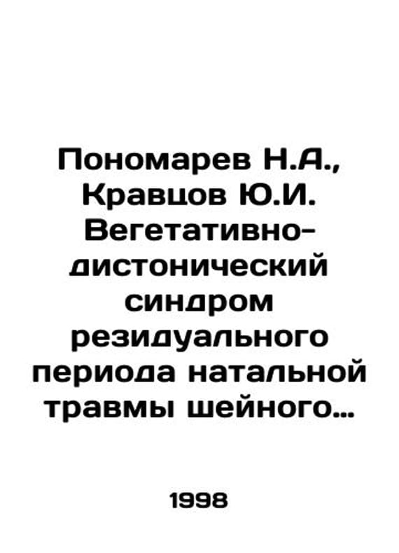 N.A. Ponomarev, Yu.I. Kravtsov Vegetative-dystonic Residual Period Natal Trauma of the Cervical Spina in Children. In Russian /Ponomarev N.A., Kravtsov Yu.I. Vegetativno-distonicheskiy sindrom rezidualnogo perioda natalnoy travmy sheynogo otdela pozvonochnika u detey. Neuroorthopaedic aspects of diagnosis and treatment Perm 1998. 164c. We have thousands of titles and often several copies of each title may be available. Please feel free to contact us for a detailed description of the copies available. SKUalb4b44db5f6bd72b8a.