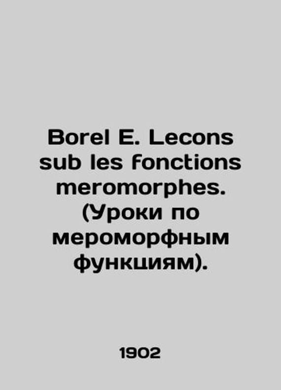 Borel E. Lecons sub les fonctions meromorphes. In Russian /Borel E. Lecons sub les fonctions meromorphes. (Uroki po meromorfnym funktsiyam). We are French Paris Gauthier-Villars, imprimeurs-librairies 1902. Emile Borel (1871-1956) is a French mathematician and politician. We have thousands of titles and often several copies of each title may be available. Please feel free to contact us for a detailed description of the copies available. SKUalb4bf873608e5bc32a.
