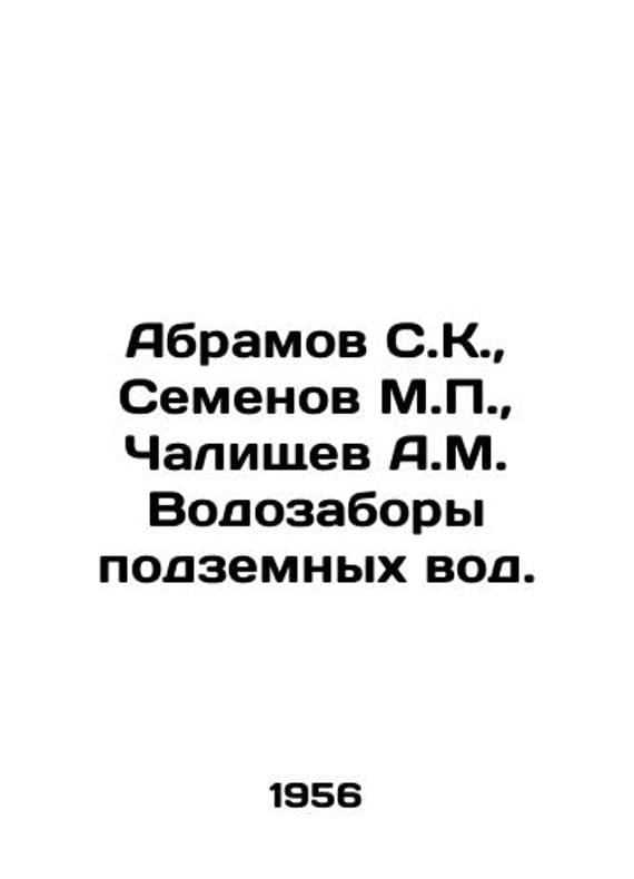 Abramov S.K., Semenov M.P., Chalishchev A.M. Groundwater abstractions. In Russian /Abramov S.K., Semenov M.P., Chalishchev A.M. Vodozabory podzemnykh vod. Edition 2, reworked. M. Gosstroyizdat 1956. 256 p. We have thousands of titles and often several copies of each title may be available. Please feel free to contact us for a detailed description of the copies available. SKUalb4c0a5b2171f07206.