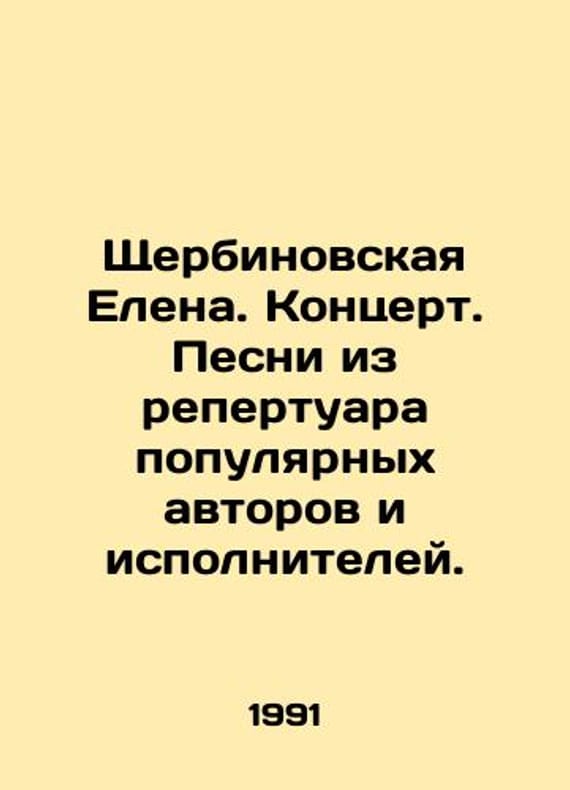 Elena Shcherbinovskaya. Concert. Songs from the repertoire of popular authors and performers. In French /Shcherbinovskaya Elena. Kontsert. Pesni iz repertuara populyarnykh avtorov i ispolniteley. Book for reading with commentary in French. M. Russian Language 1991. 192 p. We have thousands of titles and often several copies of each title may be available. Please feel free to contact us for a detailed description of the copies available. SKUalb4c16e49db7b711a6.