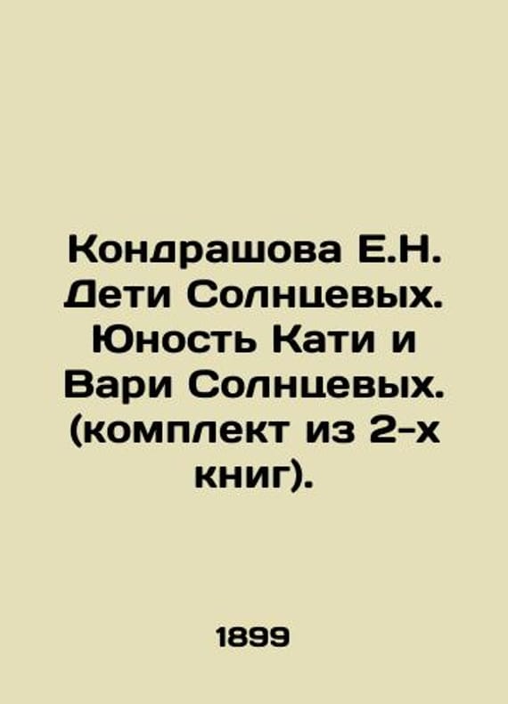 Kondrashova E.N. Solntsevs Children. Katya and Vari Solntsevs Youth (set of 2 books). In Russian /Kondrashova E.N. Deti Solntsevykh. Yunost Kati i Vari Solntsevykh. (komplekt iz 2-kh knig). A Tale for Youth. With drawings by E. P. Samokish-Sudkovskaya on separate buildings. St. Petersburg, Publishing House A. F. Devrien, Typography of the Imperial Academy of Sciences. 1899-1901, 288c. We have thousands of titles and often several copies of each title may be available. Please feel free to contact us for a detailed description of the copies available. SKUalb4c2ed6718a5989a4.