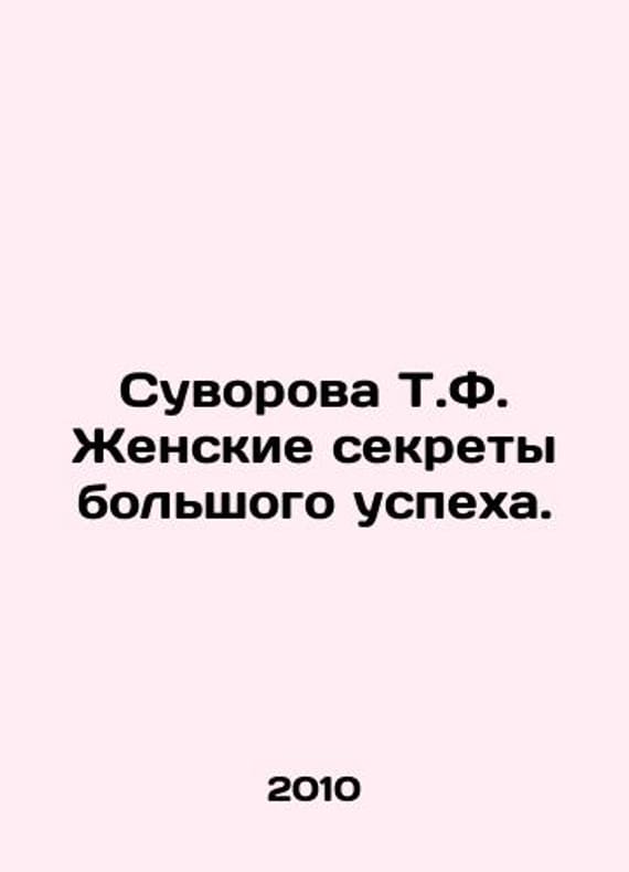 T.F. Suvorovas Womens Secrets of Great Success. In Russian /Suvorova T.F. Zhenskie sekrety bolshogo uspekha. Almanac of Bryansk BROO-Club of Business Women 2010, 270p. We have thousands of titles and often several copies of each title may be available. Please feel free to contact us for a detailed description of the copies available. SKUalb4d40b771e71c9501.