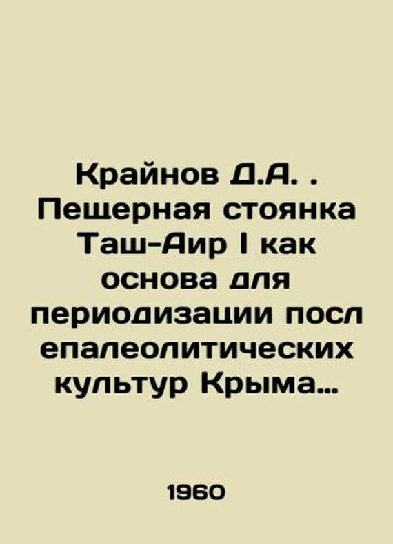 Krajnov D.A. The Tash-Air I cave site as a basis for periodicalization of Crimeas post-Paleolithic cultures Materials and research on the archaeology of the USSR. # 91. In Russian /Kraynov D.A. Peshchernaya stoyanka Tash-Air I kak osnova dlya periodizatsii poslepaleoliticheskikh kultur Kryma Materialy i issledovaniya po arkheologii SSSR. # 91. Moscow: Leningrad: Publishing House of the Academy of Sciences of the USSR, 1960. 190s. We have thousands of titles and often several copies of each title may be available. Please feel free to contact us for a detailed description of the copies available. SKUalb4d6a842c20efb5e2.