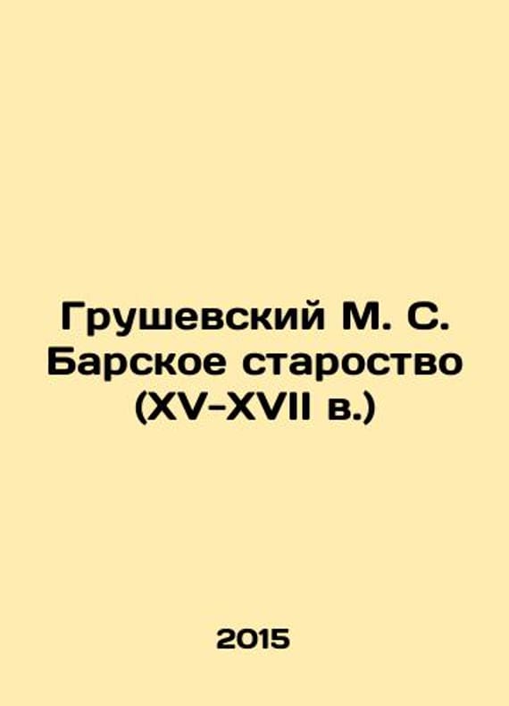Hrushevsky M. S. Barskoye Eldership (15th-17th centuries) In Russian /Grushevskiy M. S. Barskoe starostvo (XV-XVII v.) 5 copy Moscow Publishing House, V. Sekachev, 2015, 412s. We have thousands of titles and often several copies of each title may be available. Please feel free to contact us for a detailed description of the copies available. SKUalb4d83bd1bb2a40721.