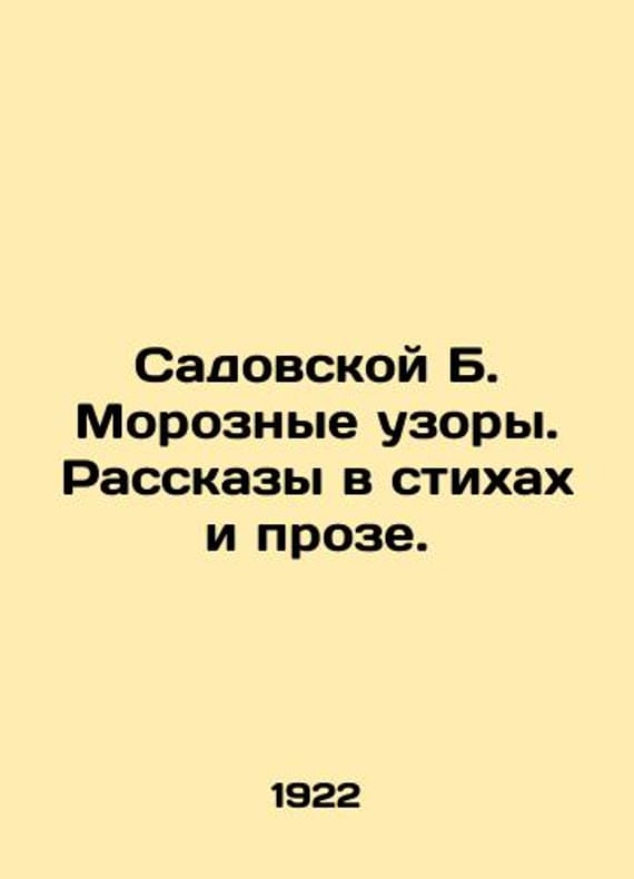 Sadovskaya B. Frosty Patterns. Stories in Poems and Prose. In Russian (ask us if in doubt)/Sadovskoy B. Moroznye uzory. Rasskazy v stikhakh i v proze.Pg. Time 79 p. We have thousands of titles and often several copies of each title may be available. Please feel free to contact us for a detailed description of the copies available. SKUalbebee91041cac1f69