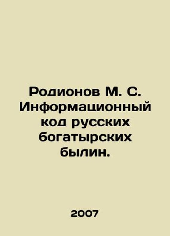Rodionov M. S. The information code of the Russian Bogatyrsky bulls. In Russian /Rodionov M. S. Informatsionnyy kod russkikh bogatyrskikh bylin. Chelyabinsk. Encyclopedia. 2007. 275 p. We have thousands of titles and often several copies of each title may be available. Please feel free to contact us for a detailed description of the copies available. SKUalb4d9c8a5b9d6c6844.