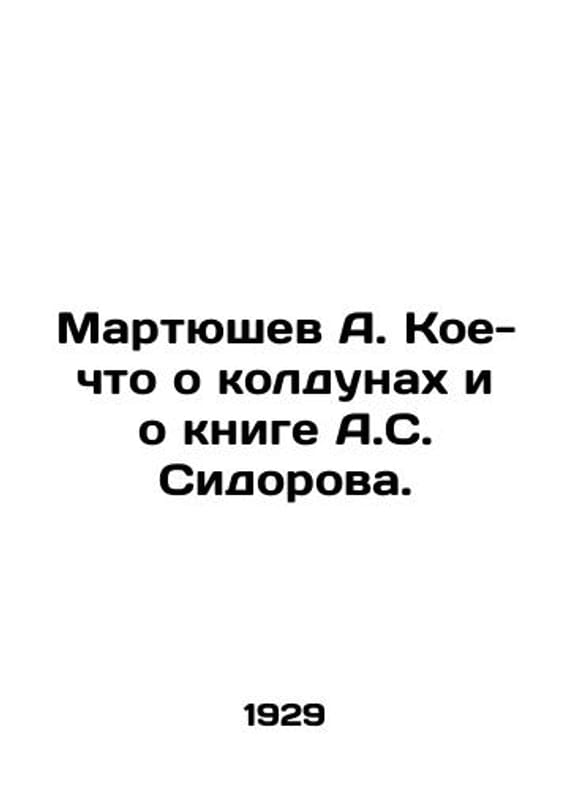 Martyushev A. Something about witches and the book by A. S. Sidorov. In Russian /Martyushev A. Koe-chto o koldunakh i o knige A.S. Sidorova. Local History Department. Ustsysolsk. 1929. We have thousands of titles and often several copies of each title may be available. Please feel free to contact us for a detailed description of the copies available. SKUalb4e5746410f693054.