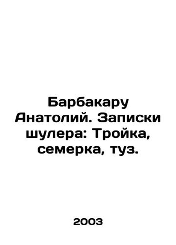 Barbacharu Anatoly. Shooters notes: Three, seven, ace. In Russian /Barbakaru Anatoliy. Zapiski shulera: Troyka, semerka, tuz. Moscow Exmo 2003. 384s. We have thousands of titles and often several copies of each title may be available. Please feel free to contact us for a detailed description of the copies available. SKUalb4e7251b973a8da27.