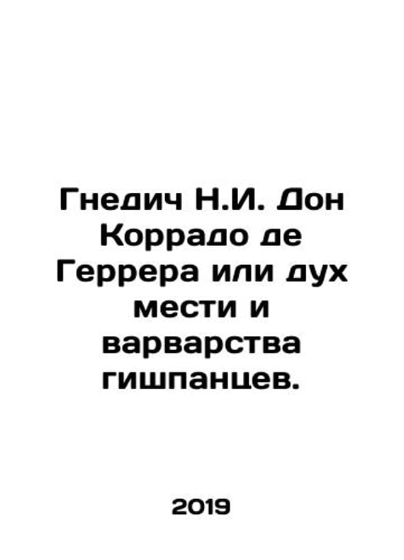 The Ned of N.I. Don Corrado de Guerrera or the spirit of vengeance and barbarism of the Hispanics. In Russian /Gnedich N.I. Don Korrado de Gerrera ili dukh mesti i varvarstva gishpantsev. Series: Literary Monuments. Novosibirsk: Ladomir, Science, 2009, 456 p. We have thousands of titles and often several copies of each title may be available. Please feel free to contact us for a detailed description of the copies available. SKUalb4ed8573975e62e66.