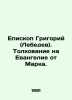 Bishop Gregory (Lebedev). Interpretation on the Gospel according to Mark. In Russian /Episkop Grigoriy (Lebedev). Tolkovanie na Evangelie ot Marka. M NZV. 1991. 151 p. We have thousands of titles and often several copies of each title may be available. Please feel free to contact us for a detailed description of the copies available. SKUalb4f312f5a2e20c6cf.