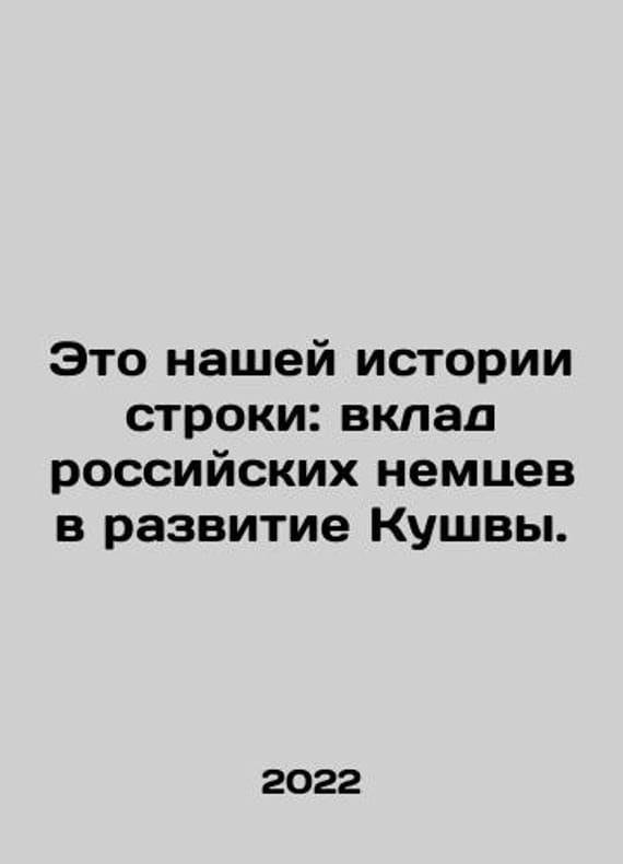 This is our story line: the contribution of Russian Germans to the development of Kushva. In Russian /Eto nashey istorii stroki: vklad rossiyskikh nemtsev v razvitie Kushvy. Kushwa 2022 434 p. We have thousands of titles and often several copies of each title may be available. Please feel free to contact us for a detailed description of the copies available. SKUalb4f4f468bd607f0ed.