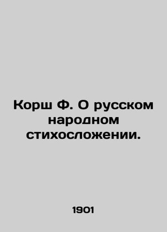 Korsh F. On Russian Folk Poetry. In Russian /Korsh F. O russkom narodnom stikhoslozhenii. St. Petersburg. Publishing House of the Academy of Sciences 1901. 123 p. We have thousands of titles and often several copies of each title may be available. Please feel free to contact us for a detailed description of the copies available. SKUalb4f4fcb3c27972095.