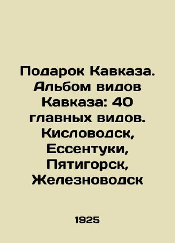 The gift of the Caucasus. An album of views of the Caucasus: 40 main species. Kislovodsk Yessentuki Pyatigorsk Zheleznovodsk In Russian (ask us if in doubt)/Podarok Kavkaza. Albom vidov Kavkaza: 40 glavnykh vidov. Kislovodsk Essentuki Pyatigorsk Zheleznovodsk 1925. The album is made up of 38 sheets some of which have two pictures. We have thousands of titles and often several copies of each title may be available. Please feel free to contact us for a detailed description of the copies available. SKUalb4f51f9c85ab43e5b