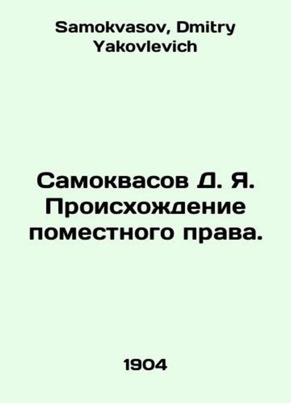 Samokvasov D. Ya. The origin of local law. In Russian /Samokvasov D. Ya. Proiskhozhdenie pomestnogo prava. M. University Printing House 1904. 68 p. 22x14.5 sm. We have thousands of titles and often several copies of each title may be available. Please feel free to contact us for a detailed description of the copies available. SKUalb4f92744a452b530c.
