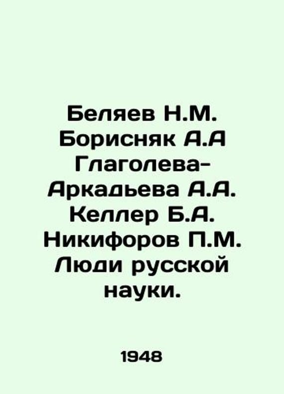 Belyaev N.M. Borisnyak A.A. Glagoleva-Arkadyeva A.A. Keller B.A. Nikiforov P.M. The People of Russian Science. In Russian /Belyaev N.M. Borisnyak A.A Glagoleva-Arkadeva A.A. Keller B.A. Nikiforov P.M. Lyudi russkoy nauki. Essays on outstanding figures in natural science and engineering (Volume 2, Moscow, 1948. We have thousands of titles and often several copies of each title may be available. Please feel free to contact us for a detailed description of the copies available. SKUalb4ff05578eb912eab.