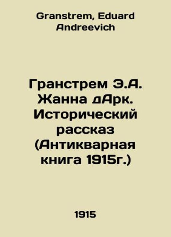 Granstrem E.A. Joan of Arc. Historical Tale (Antique Book 1915) In Russian /Granstrem E.A. Zhanna dArk. Istoricheskiy rasskaz (Antikvarnaya kniga 1915g.) Petrograd Printing House, Public Usefulness 1915. 312s. We have thousands of titles and often several copies of each title may be available. Please feel free to contact us for a detailed description of the copies available. SKUalb500f7c9f901c21f7.