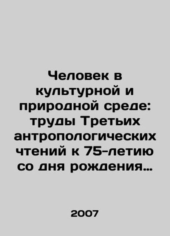 Man in the Cultural and Natural Environment: The Proceedings of the Third Anthropological Readings for the 75th Anniversary of Academician V. Alekseevs Birth (Moscow, November 15-17, 2004) In Russian /Chelovek v kulturnoy i prirodnoy srede: trudy Tretikh antropologicheskikh chteniy k 75-letiyu so dnya rozhdeniya akademika V. Alekseeva. (Moskva, 15-17 noyabrya 2004 g.) Revised by T. I. Alekseev. Moscow: Nauka, 2007. We have thousands of titles and often several copies of each title may be available. Please feel free to contact us for a detailed description of the copies available. SKUalb5064bfc7e858cd5a.