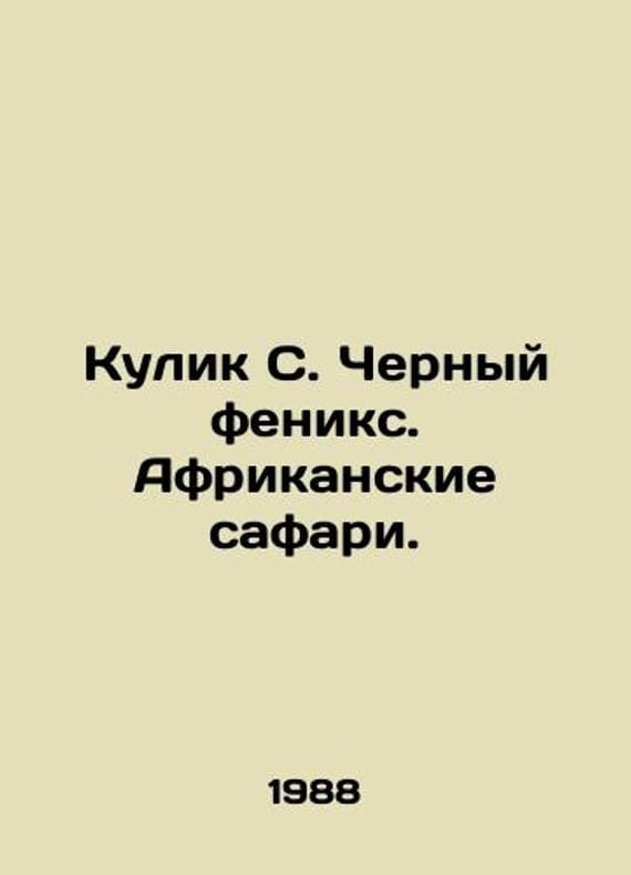 Kulik S. Black Phoenix. African safaris. In Russian /Kulik S. Chernyy feniks. Afrikanskie safari. Preface by Y.M. Kobishchanov Thought. 1988. We have thousands of titles and often several copies of each title may be available. Please feel free to contact us for a detailed description of the copies available. SKUalb5073ff1a91f91856.