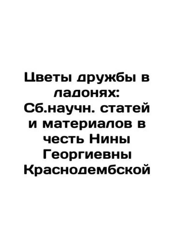 Flowers of Friendship in the Palms: Collected Scientific Articles and Materials in Honor of Nina Georgievna Krasnodemskaya In Russian /Tsvety druzhby v ladonyakh: Sb.nauchn. statey i materialov v chest Niny Georgievny Krasnodembskoy Ed.I.Y.Kotin, L.I.Kulikov, E.S.Soboleva St. Petersburg 2024 St. Petersburg Oriental Studies 256 s. We have thousands of titles and often several copies of each title may be available. Please feel free to contact us for a detailed description of the copies available. SKUalb50c12a37038969a7.