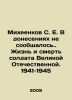 Mikheenkov S.E. The reports did not report the life and death of a soldier of the Great Patriotic War. 1941-1945. In Russian /Mikheenkov S.E. V doneseniyakh ne soobshchalos. Zhizn i smert soldata velikoy otechestvennoy. 1941-1945 Moscow Center Polygraph 2009. 351 p. We have thousands of titles and often several copies of each title may be available. Please feel free to contact us for a detailed description of the copies available. SKUalbf245396fa760a226.