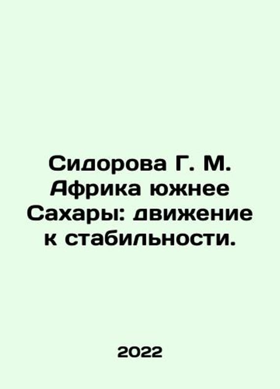 Sidorova G. M. Sub-Saharan Africa: The Road to Stability. In Russian /Sidorova G. M. Afrika yuzhnee Sakhary: dvizhenie k stabilnosti. M. Prospekt 2022. 200 p. We have thousands of titles and often several copies of each title may be available. Please feel free to contact us for a detailed description of the copies available. SKUalb510460bafeecb86b.