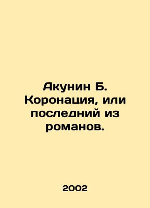 Akunin B. The coronation, or the last novel. In Russian /Akunin B. Koronatsiya, ili posledniy iz romanov. The New Detective series. Moscow: Zakharov 2002. We have thousands of titles and often several copies of each title may be available. Please feel free to contact us for a detailed description of the copies available. SKUalb519fbd34d7f67639.