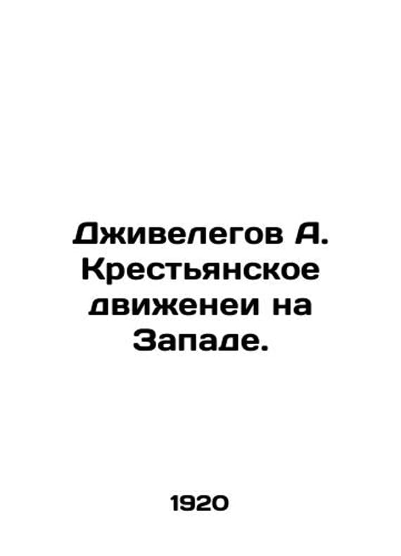 Jivelegov A. The Peasant Movement in the West. In Russian /Dzhivelegov A. Krestyanskoe dvizhenei na Zapade. M. Book 1920. We have thousands of titles and often several copies of each title may be available. Please feel free to contact us for a detailed description of the copies available. SKUalb51a95b665e43b2e0.