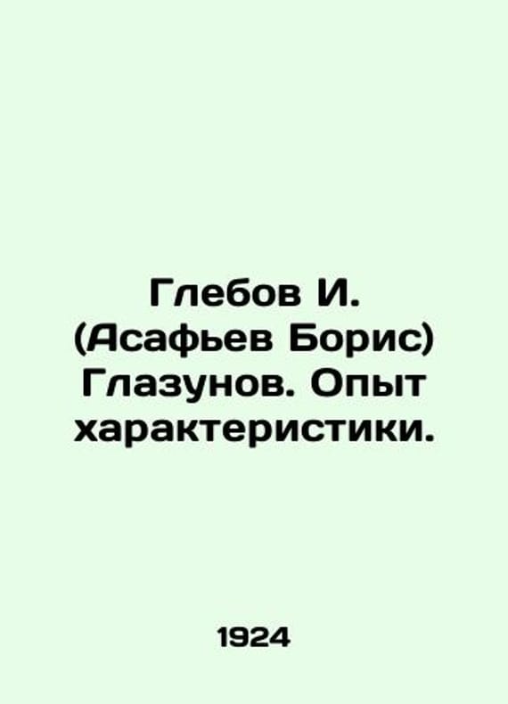Glebov I. (Asafiev Boris) Glazunov In Russian /Glebov I. (Asafev Boris) Glazunov. Opyt kharakteristiki. Series: Experience of Characteristics. Petrograd Svetozar 1924 (1925-oblast) 178s. We have thousands of titles and often several copies of each title may be available. Please feel free to contact us for a detailed description of the copies available. SKUalb51b125ecb0551a4a.