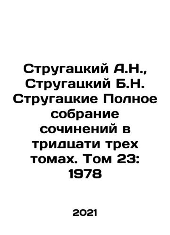 Strugatsky A.N., Strugatsky B.N. Strugatsky Complete collection of essays in thirty-three volumes. Volume 23: 1978 In Russian /Strugatskiy A.N., Strugatskiy B.N. Strugatskie Polnoe sobranie sochineniy v tridtsati trekh tomakh. Tom 23: 1978 St. Petersburg Publishing House, 2021, 880 p. We have thousands of titles and often several copies of each title may be available. Please feel free to contact us for a detailed description of the copies available. SKUalb51ffecec3d49ae1b.