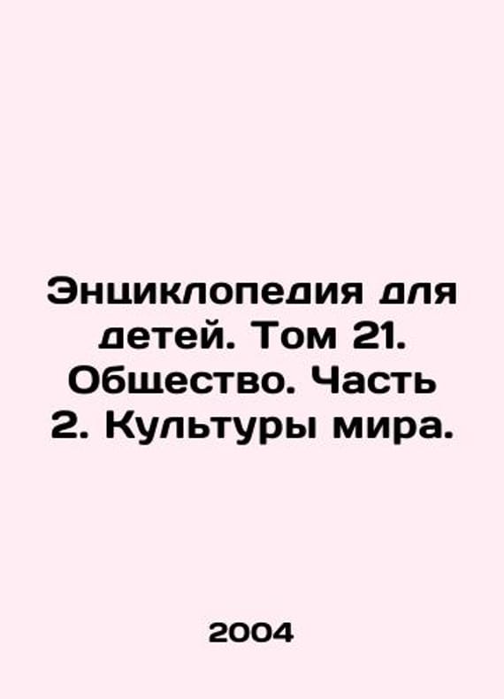 Encyclopedia for Children. Volume 21. Society. Part 2. Cultures of the World. In Russian /Entsiklopediya dlya detey. Tom 21. Obshchestvo. Chast 2. Kultury mira. M. Avanta and. 2004. 640s. We have thousands of titles and often several copies of each title may be available. Please feel free to contact us for a detailed description of the copies available. SKUalb521c681ddf04adf7.