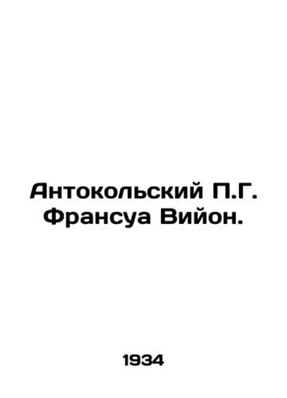 Francois Villons Anthocolica. In Russian /Antokolskiy G. Fransua Viyon. Dramatic poem in 3 parts. M. GIHL 1934. We have thousands of titles and often several copies of each title may be available. Please feel free to contact us for a detailed description of the copies available. SKUalb5236b2e47d1fcea0.