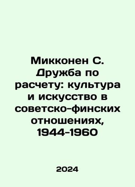 Mikkonen S. Friendship by Design: Culture and Art in Soviet-Finnish Relations, 1944-1960 In Russian /Mikkonen S. Druzhba po raschetu: kultura i iskusstvo v sovetsko-finskikh otnosheniyakh, 1944 1960 per. s finsk. Moscow New Literary Review 2024. 368s. We have thousands of titles and often several copies of each title may be available. Please feel free to contact us for a detailed description of the copies available. SKUalbe23682bb74892c08.