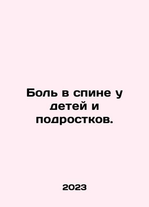 Back pain in children and adolescents. In Russian /Bol v spine u detey i podrostkov. Under the editorship of R.M. Schend, U.L. Henricus: Translated from English: Under the editorship of A.B. Danilov. M Gaotar-Media 2023 432 pp. We have thousands of titles and often several copies of each title may be available. Please feel free to contact us for a detailed description of the copies available. SKUalb526b6266699d13a2.