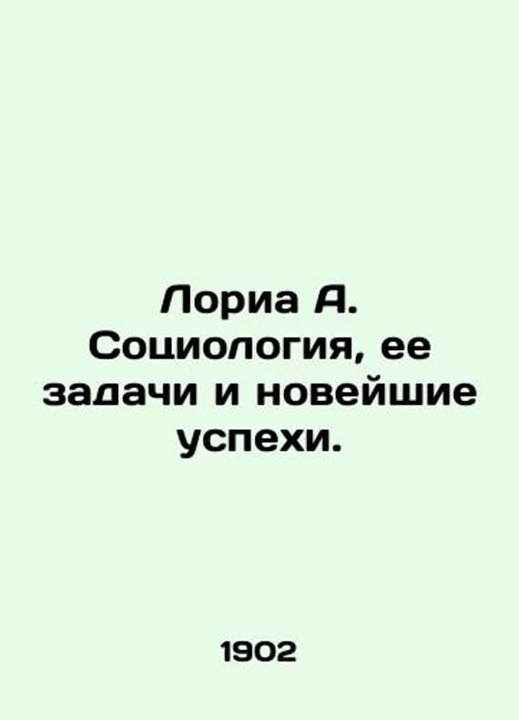 Loria A. Sociology, its challenges and recent successes. In Russian /Loria A. Sotsiologiya, ee zadachi i noveyshie uspekhi. S.Pb.Type. I. N. Skorokhodov. 1902. We have thousands of titles and often several copies of each title may be available. Please feel free to contact us for a detailed description of the copies available. SKUalb526e66a5f156f7c0.